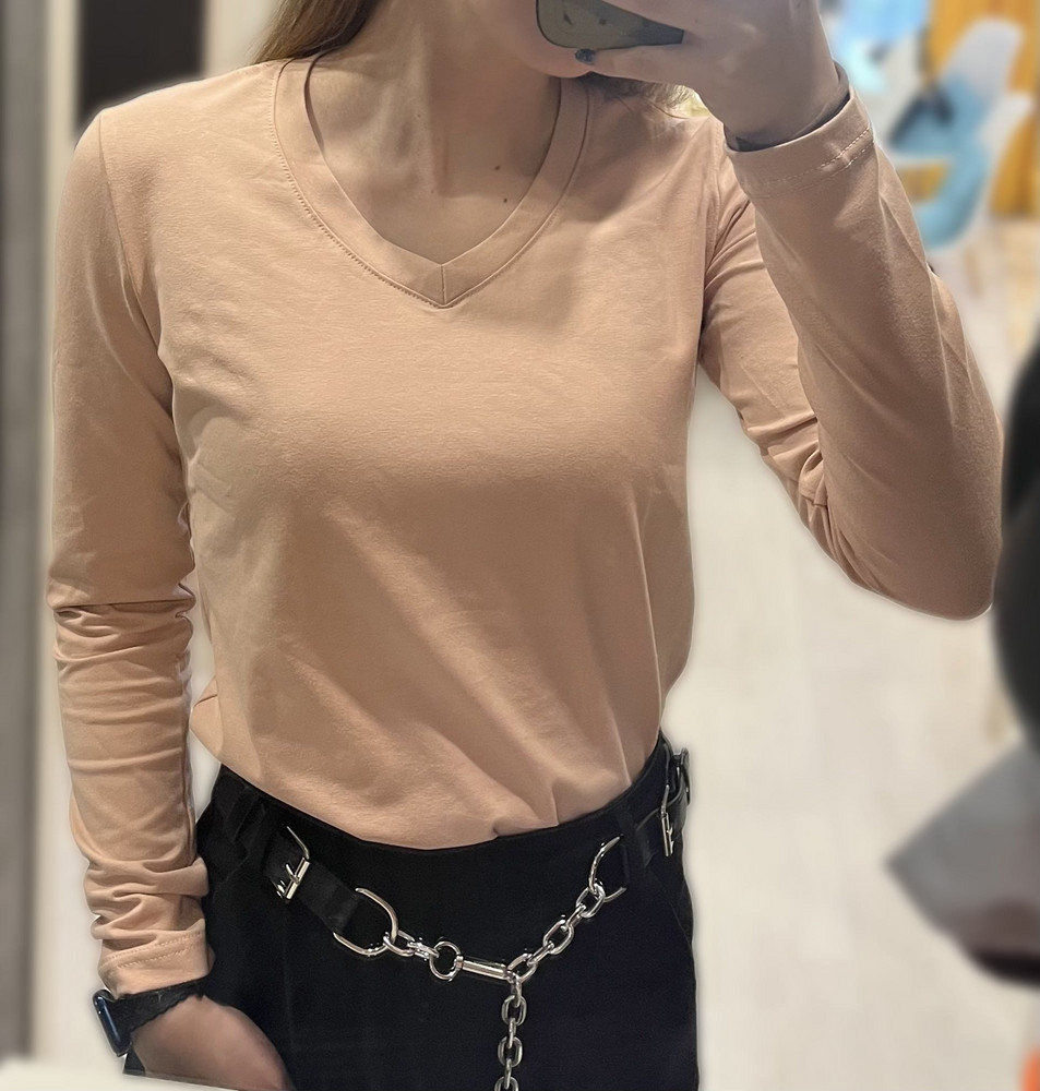 Женский базовый лонгслив с V-образной горловиной — универсальная модель, которая легко вписывается в любой гардероб и подходит для повседневных образов. Изделие выполнено из качественного трикотажа состава 95% хлопок и 5% эластан. Благодаря плотности 200 г/м², ткань держит форму, не просвечивает, комфортно тянется и остаётся мягкой даже после многократных стирок. Лонгслив имеет полуоблегающий крой, который подчёркивает силуэт, но при этом не стесняет движений. Натуральный хлопок обеспечивает воздухопроницаемость и приятные ощущения при носке, а эластан добавляет эластичности и помогает сохранять аккуратный внешний вид. Стильная V-образная горловина визуально вытягивает линию шеи и делает модель более женственной. Длинный рукав универсален для любого сезона: в прохладную погоду его можно носить самостоятельно, а зимой — использовать как базовый слой под кардиганы, джемперы, жилеты или жакеты. Однотонный дизайн позволяет сочетать лонгслив с джинсами, юбками, брюками или спортивными моделями. Он идеально подходит для повседневной одежды, офиса в стиле casual, прогулок, занятий, учёбы и домашнего комфорта. Трикотажный женский лонгслив — практичная и функциональная вещь, которая станет незаменимой частью гардероба. Он отлично садится по фигуре, подчёркивает линии тела и обеспечивает комфорт в течение всего дня благодаря качественной ткани и продуманному крою.