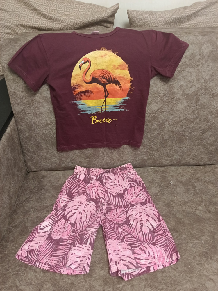 Шорты и футболка совсем разного цвета, как будто и не комплект вовсе. Отказ